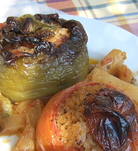 マトやピーマンに米を詰めたゲミステスはこの店では大ぶりで、どっしりと食べ応えがある。