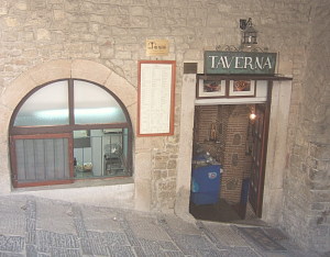 イストラはワインの産地としても有名だ。マルヴァジア種の白ワインは広くイタリアで栽培されており、比較的安いワインに使われることが多い味や香りが大人しい品種と思われている。 しかしクロアチアのマルヴァジアには驚かされる。別の品種と思うほど、力強くパンチのある濃い味がある。何でも皮まで漬け込む発酵法により、全く違った味が出てくるとのことだ。村にはお土産用のワインショップが何軒かあるので、気に入ったら帰りに買っていくのもよい。 |