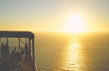スタヴロスとは、英語でクロス(十字架)のこと。そう、店のすぐ隣に戦没者記念碑の巨大な十字架が建っており、それにちなんで付けられている。遥か遠くから店を目指して行くときの良い目印だ。 山頂から傾斜に沿って段々畑のように敷地が整備されており、どの段でも海際の席をキープすれば、確実に夕日が楽しめる。旅客船の船首のように、海側に突き出したテラスが一番の人気だ。
