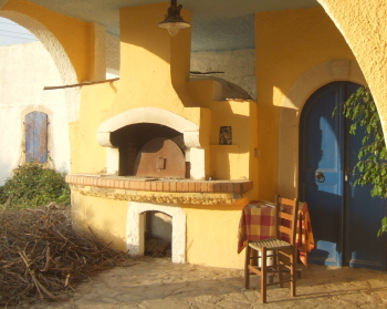 夏にはタベルナのテーブルが広場いっぱいに広がるという。ダンスや民族楽器の演奏などのイベントが、定期的に組まれているのも楽しみだ。 タベルナの上は、素晴らしい農村の眺めが広がるバールになっている。 この広場の端に、いつでも礼拝できるように小さな教会が作られているのが、信仰心が厚いギリシアらしい。