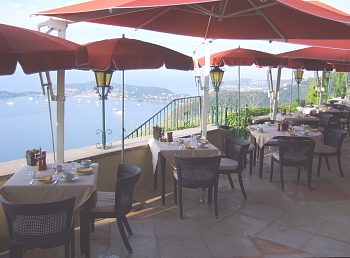 テラスレストラン「レ・ランパーツ(Les Remparts)」の料理長は、ミシュラン二つ星を持つメインレストランのシェフ、フィリップ・ラベなので、そのエッセンスを受け継いだ食事が、他に類を見ないほどの眺望を誇るテラスで食事ができる。