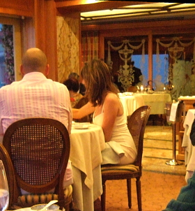 シェーブル・ドールにせっかく泊まったのであれば、一度は「ラ・シェーブル・ドール」に入ってみたい。盛装が原則だが、客がみな盛装なわけではなく、ジャケット、ワンピース着用など、一応カジュアルではないという程度の客も結構いるようだ。