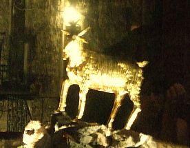 終わることのない楽しい時間を象徴するかのように、黄金の山羊は、真っ暗なテラスの中で一段と輝きを増している。