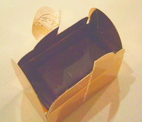 客室に戻ると、セッティングされたベッドの上には、金色の小箱が・・・。 中には、手作りのチョコレート菓子が入っていた。