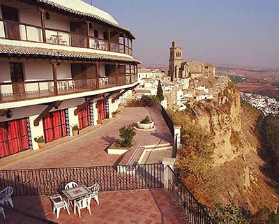 アダレーテ川の段丘に立つパラドールはかつての代官の館を改装したもので、町の最高地点でもある心臓部に位置している。スペイン南部・アンダルシア地方で大西洋に面したコスタ・デ・ラ・ルス近くに、シェリー酒で有名なヘレス・デ・ラ・フロンテーラがある。このパラドールは、そこからしばらく内陸に入った小さな町アルコス・デ・ラ・フロンテーラのビューポイントに立っている。 |