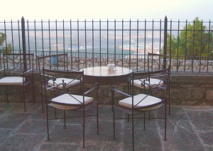 ディナーの後は、ホール脇のテラスにあるバールのテーブルで涼んで行きたい。