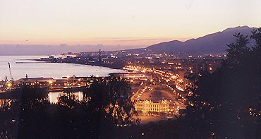 ラガの町と港を見下ろすアラブの古い砦アルカサバ。アラブ庭園の美しいこの砦の上のヒブラルファーロ城跡脇にパラドール・ヒブラルファーロは建てられている。明るいインテリアの室内からはマラガを一望することができ、青い海をバックにした昼の景色、大聖堂や闘牛場を始め市街が光の海となる夜景、いずれも素晴らしい。レストランでももちろんその景色を眺めながら、魚のスープ、フリットなどに舌包みを打つのもよい。