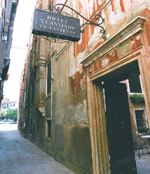 はやる心に突き動かされて、さっそく市街の散策に出かけたくなる。ゴンドラや水上タクシーを呼んでも良いが、裏口から外に出て、細い路地を抜けて市民の歩く迷路のような舗道を辿ってリアルト橋まで行っても遠くない。 |