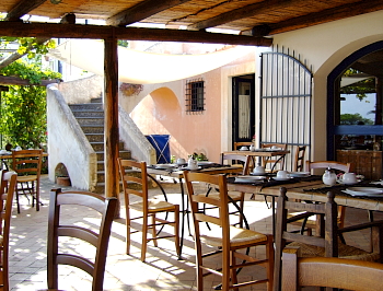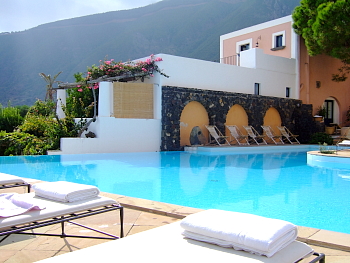 月明かりを頼りに部屋に戻り、夜の静けさの中に身をおく。天井のクラシックな扇風機の大きな羽が作り出す微かな風と共に、心地よい眠りに就く。 夏のサリーナ島には、スローライフを求めてヨーロッパ中から人が集まってくる。船やホテルのキャパシティーが限られているため大混雑は起こらないが、その分満室・満席などに遭遇しやすい。また費用も自ずから高くなる。ならばシーズンオフに行けばいいのではという考えもあるだろうが、この島の魅力は、海と太陽と大自然であることを忘れないで欲しい。この島を、そしてこのホテルでの生活を楽しむのなら、やはり夏をお勧めしたい。 |