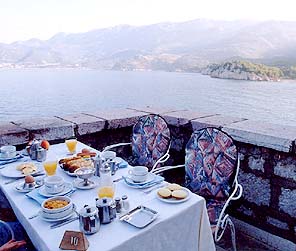 ドリア海を代表するリゾートホテルといえば、モンテネグロ(旧国名;ユーゴスラビア)のスヴェティ・ステファンをあげたい。陸地からぽつんと離れた小島全体がそのままホテルになっており、俳優のソフィア・ローレン、シルベスタ・スタローン、スキーのインゲマル・ステンマルクなど顧客名簿には欧米の著名人の名が並ぶ。