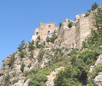 キプロス島北岸の良好ギルネ(キレニア)を見下ろす標高940メートルの山頂に、ビサンティン帝国の12世紀の城跡がある。その足元に遥か彼方まで海岸線を見渡す素晴らしい展望は、まさに敵を見張る望楼として最高であったに違いない。