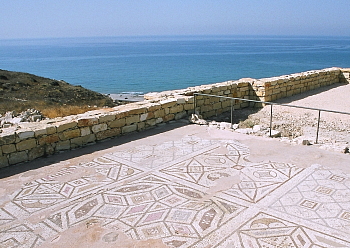 遺跡は長さ3キロに渡って点在しているが、大きく2つの部分に分かれている。一番目を引くのは、壮大なローマ劇場だ。 修復された観客席に座り、青い地中海を背景にした舞台を眺めているだけでワクワクしてくる。 公衆浴場の綺麗に修復されたモザイクもすぐ近くだ。