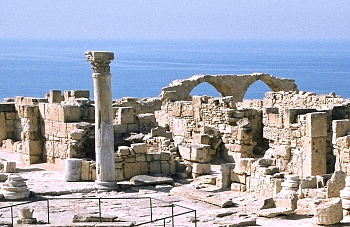 途中、広大な競技場などを見学しながら、アポロンの聖域(The Sanctuary of Apollo Hylates)に向かおう。この遺跡のアポロン神には、Hylates(ギリシア語でylatis−森)という修飾語がつくことからも分かるように、海を感じるクリオンと対照的に、こちらは高原の緑の中にある。 城壁に囲まれた聖域内の遺跡は規模こそ小さいが、修復された神殿の柱の存在感は圧倒的で、聖所の威厳が感じられる。 クリオン遺跡は、キプロス第二の都市レメソス(リマソル)の東約10kmにある。この一帯は英国領アクロティリ・デケリアに含まれるので、あちこちに建つ英国空軍の巨大なアンテナを除けば、開発が一切行われておらず、素晴らしい自然環境が保たれている。 なお国境管理等はなく、基地関係を除いた一切の活動は行われていないので、キプロス国内のつもりで訪問することができる。 --> http://www.limassolmunicipal.com.cy/kourion/(地元レメソス市サイト中のページ)