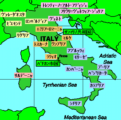 イタリアには20の州と2つの国があります。「2つの国」は正確には外国になるのでイタリアではないのですが、サンマリノ共和国とバチカン市国です。