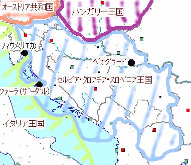 ![]() 西暦1920年頃第一次世界大戦とユーゴスラビアの成立1908年、オーストリアは突然ボスニア・ヘルツェゴビナを併合する。セルビアを始めとするスラブ人諸国は大反対するが、有効な対策がみつからなかった。 1912年、セルビア、モンテネグロ、ブルガリア、ギリシアの各国はトルコのますますの衰えを見越して、占領地を回復すべく第一次バルカン戦争を起こし、トルコに宣戦布告する。戦争は大勝利を納めたが、回復地の分配から内紛が生じ第二次バルカン戦争が始まる。セルビア、モンテネグロはここでも勝利をおさめ、トルコ支配地の回復を完了する。ここでセルビア人国家同士である、セルビアとモンテネグロは国境がつながり、セルビア人は海への出口を得る。 セルビアの大発展は南スラブ諸民族に連帯意識を高めると同時に、ギリシアから中近東への道を確保したいオーストリアに強い警戒心を抱かせた。 1914年、オーストリアはボスニアのサラエボで皇太子が何者かに殺されたのを口実にセルビアに宣戦布告し、ここに第一次世界大戦の火蓋が切って落とされた。 同盟軍(ドイツ、オーストリア、ブルガリア、トルコ)はまたたく間にセルビアとモンテネグロを占領するが、セルビア・モンテネグロ軍はモンテネグロの山岳地帯で良く持ちこたえ、政府を協商側のギリシア領コルフ島まで後退させて、ロシアの反撃とアメリカの介入で同盟軍の勢いが衰えるのを待った。セルビアとモンテネグロはこの大戦で大きな犠牲を払い、人口の2割〜4割を失った。 最終的な勝利を得たあと、戦後処理としての領土の配分が国際的に協議されたが、周辺の諸外国、地域内のスラブ人諸民族の駆け引きから容易にはまとまらず、1918年ようやくセルビア・クロアチア・スロベニア王国が誕生した。1929年にはユーゴスラビア王国を名乗る。またイタリアはベネチア共和国が失ったイタリア人の土地の回復をはかってこの大戦に参戦し、スロベニア西部とイストラ、ツァーラ、ラストボ島はイタリア領となった。実際一部の都市ではまだイタリア人が住民の過半数を占めていたのである。 このスラブ人による初の統一国家はセルビア王国をそのまま引き継いだものであったため、クロアチア人、スロベニア人、およびトルコが去った後のボスニアに残るイスラム教徒にとっては、異民族支配そのものであった。なぜならオーストリアやトルコの統治下よりははるかに良いものの、同じスラブ人とはいえ宗教も文化も異なるセルビア人は他民族から見れば受け入れがたいものであったからである。 特に非セルビア人として最大勢力であるクロアチアは反発を強め、1932年民族主義組織ウスタシャが設立される。また1939年自治州として認められ、このことは王国内の他民族にもおおいに刺激を与えた。 |